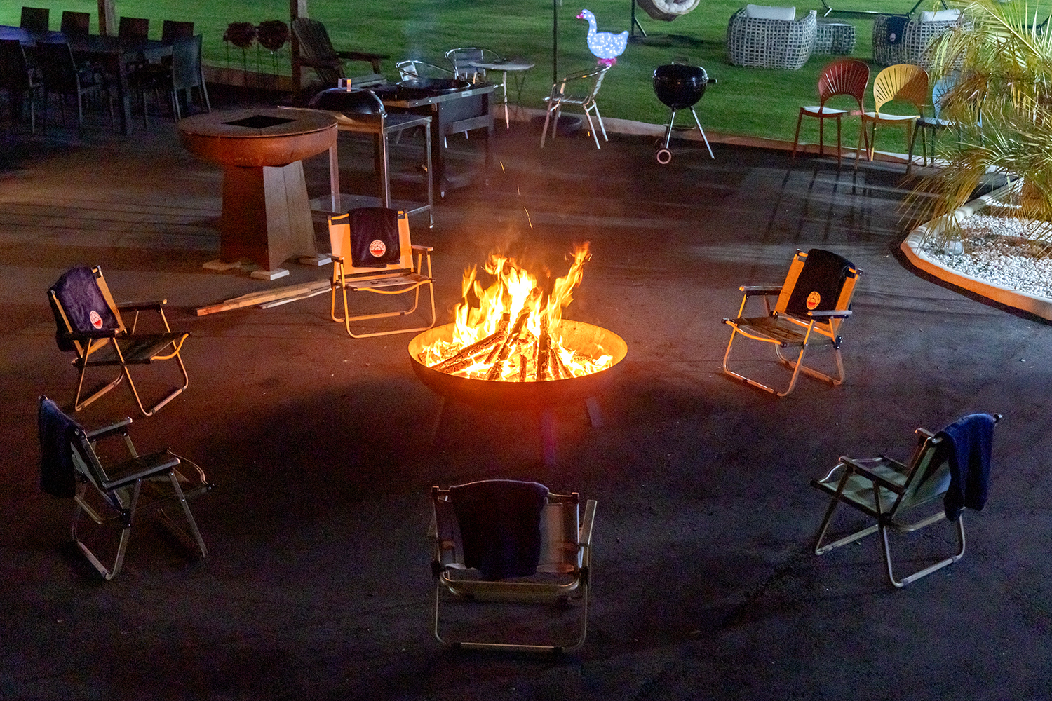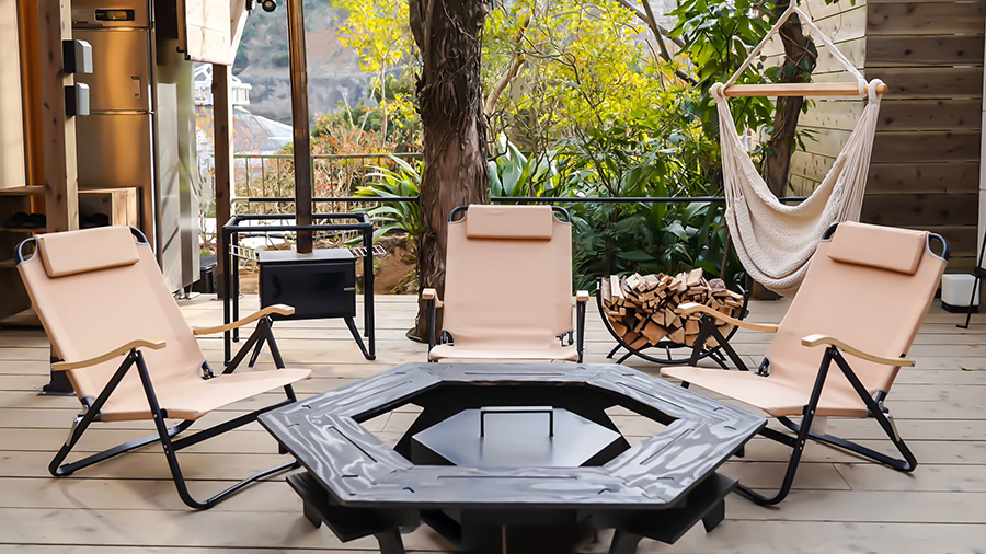 各棟専用の焚き火台でパチパチと薪のはぜる音や、揺らめく炎を眺めながら特別な時間をお過ごしください。