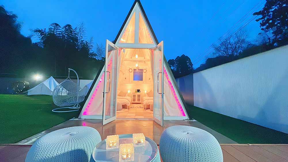 ロケーション、ラグジュアリーさ、グルメにスパ、完全プライベート空間はどれをとっても五つ星級となっており、至福の時間が過ごせるグランピング施設となっています。