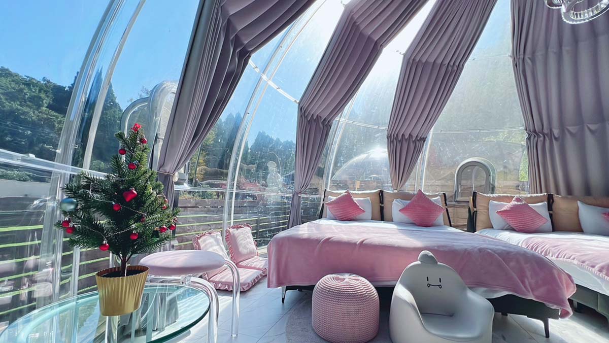 360°全透明なドームテントから見える大自然の美しい景観が楽しめます。