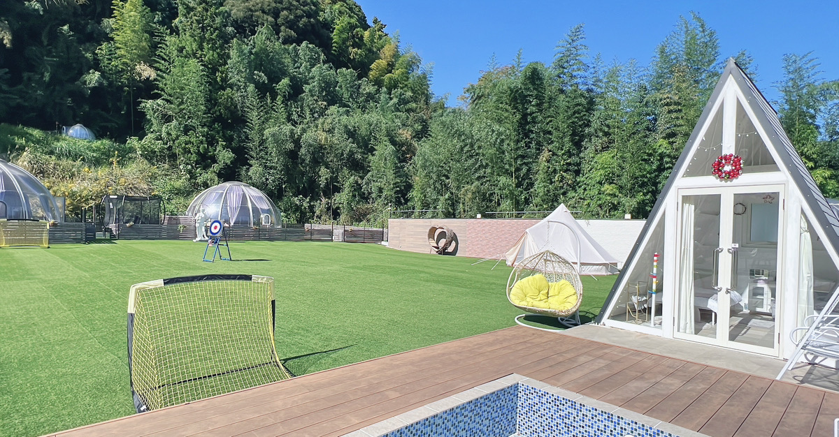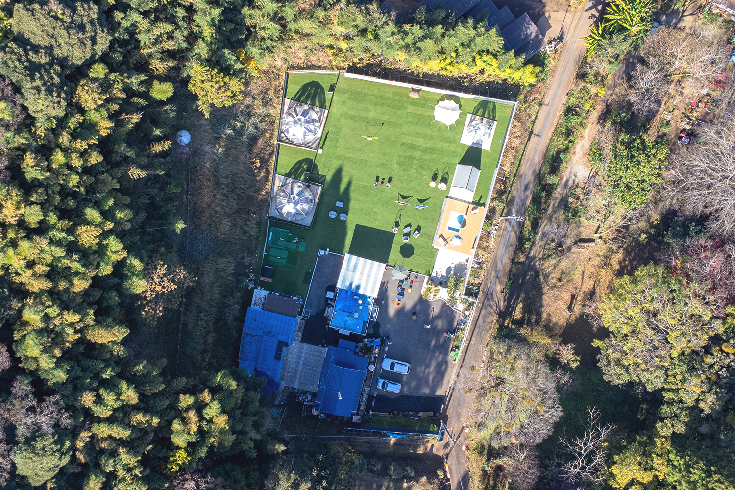 都内から近場で豊かな自然の中、5,800平米の敷地(サッカーフィールド程度)を貸し切りで楽しむ特別なグランピング体験ができる人気施設となっています。