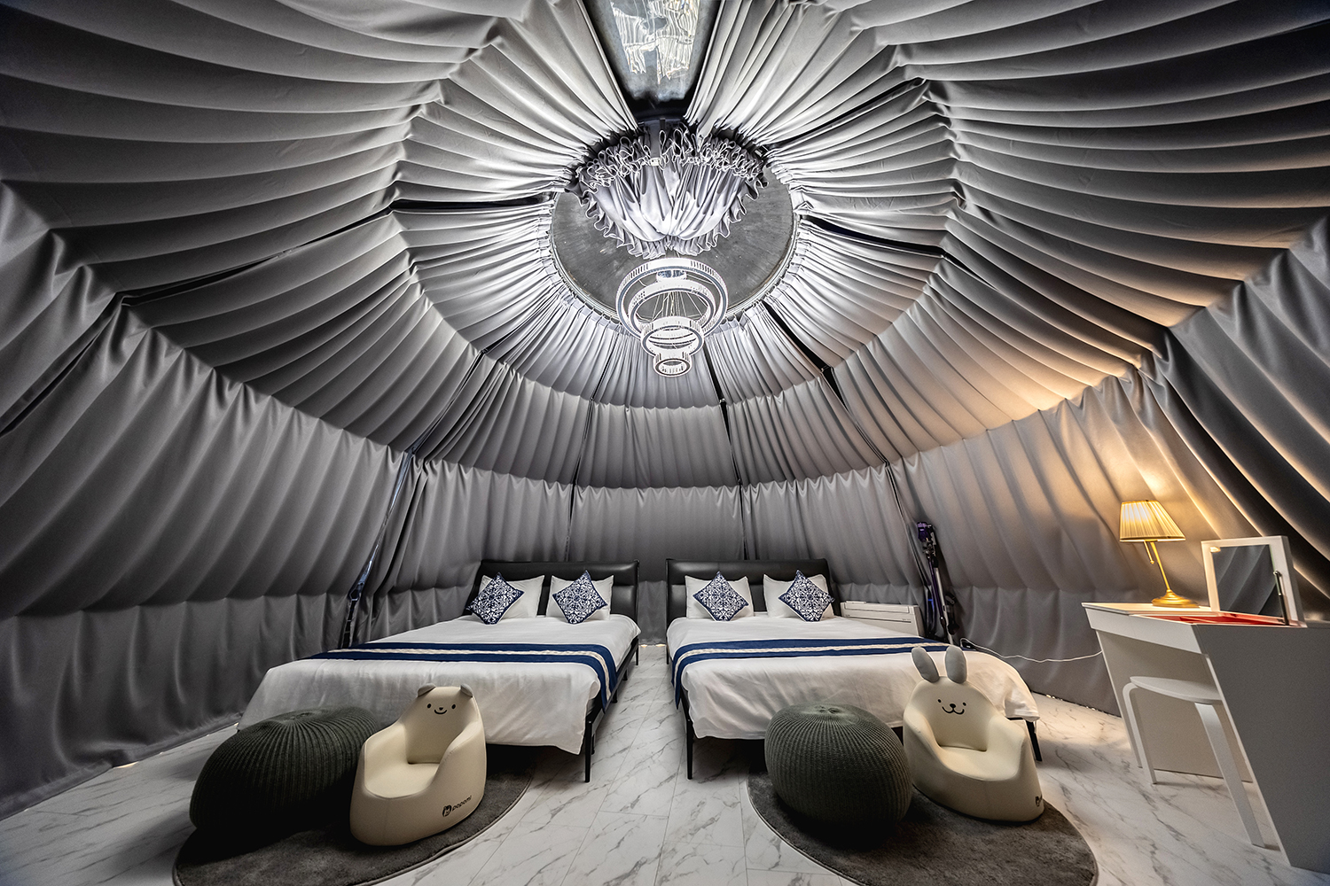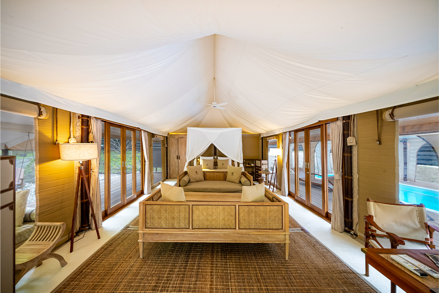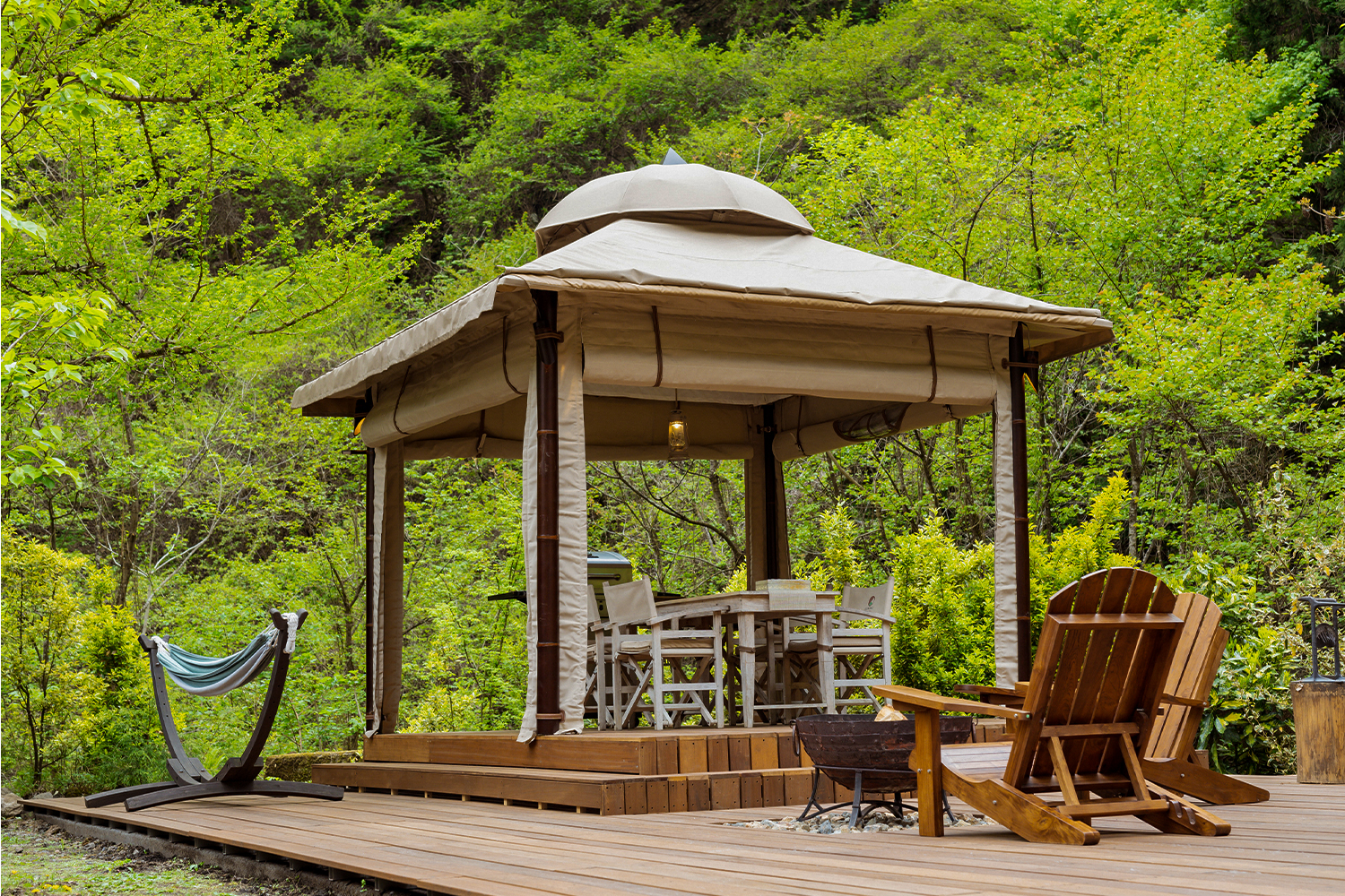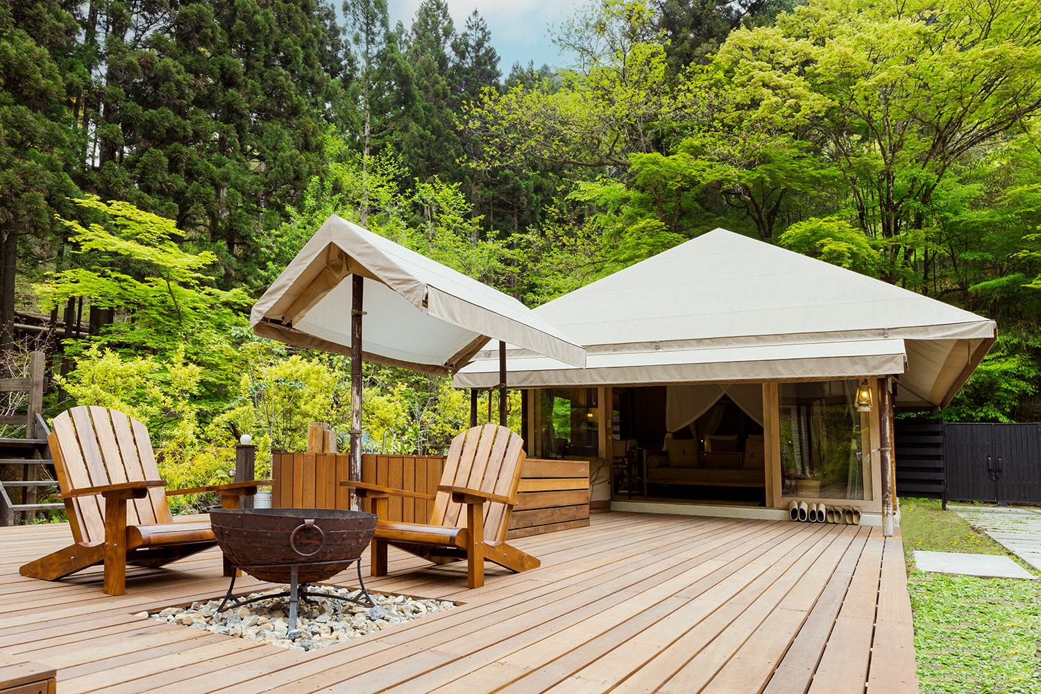 4)50㎡の豪華テントでストレスフリーな時間を。