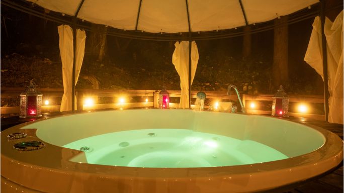 なんとジャグジーが付いているテントサイトもあり、誰にも邪魔されない自分たちだけの快適なリラックスタイムを過ごすことができるのも魅力的です。ジャグジー付きのグランピングなんてなかなかありません・・・贅沢!