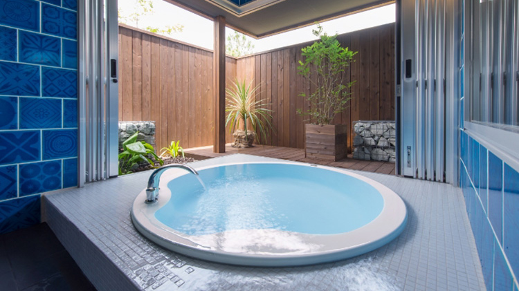 なんと全棟に天然温泉露天風呂が付いているので、朝も夜もいつでも好きなタイミングでお風呂を楽しむことができます。関東屈指の天然温泉を完全なプラーベート空間で満喫できるのが最大の魅力です。