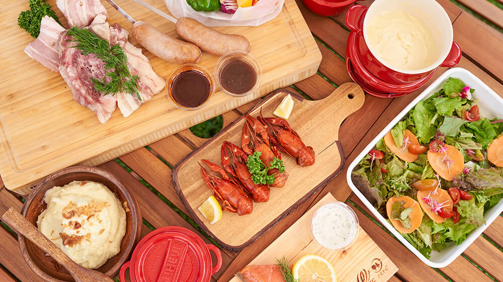 国産リブステーキや生ピザ生地を含むこだわりのメニューの用意があり、ここでもラグジュアリーなBBQが体験できます!